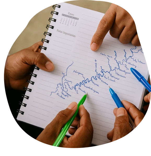Con el pueblo Wayuu, el Navegador permitió trazar rutas propias desde sus voces. El proceso fue un ejercicio de escucha profunda, donde se tradujo en datos la experiencia cotidiana de la comunidad, con sus retos y fortalezas, para narrar desde adentro y sin intermediaciones lo que se necesita para el buen vivir Wayuu.